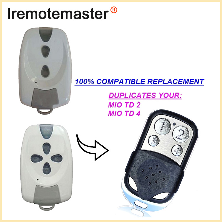 Por MIO TR2 TR4 Garage Remote Control Rolling Code 433MHz estas populara en Eŭropo, ĝi estas kongrua kun MIO TR2 TR4 Rolling Code 433MHz.